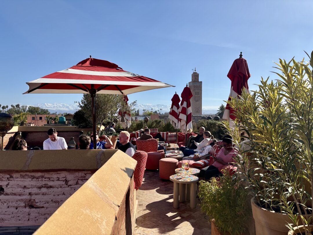 En bord de médina, c’est l’un des rooftops les plus courus et stylés de la ville, perché au-dessus du riad de luxe éponyme fondé par Vanessa Branson (la soeur de Richard), réputée pour son goût. La vue sur l’Atlas et la Koutoubia ainsi que l’ambiance et les frites maison valent le déplacement. Et à bon entendeur: le concept store du rez (par lequel on accès au rooftop pour les non-résidents de l’hôtel) est également canon, donc assez dangereux pour le porte-monnaie…