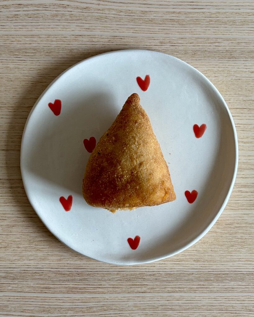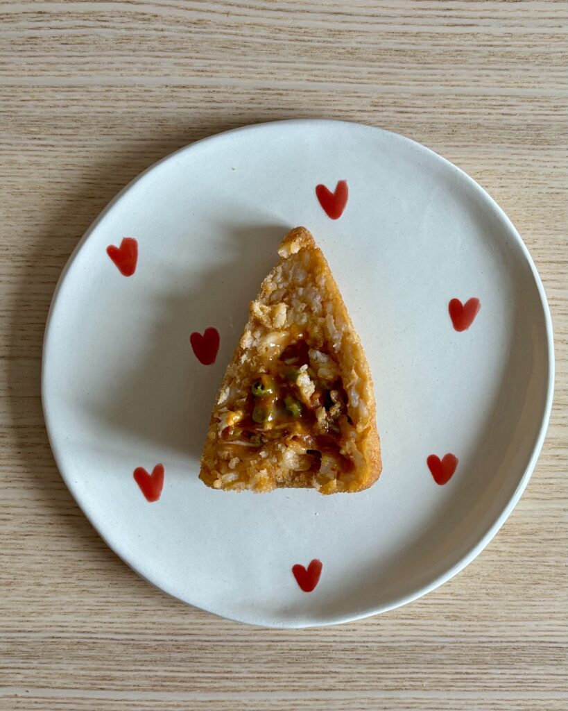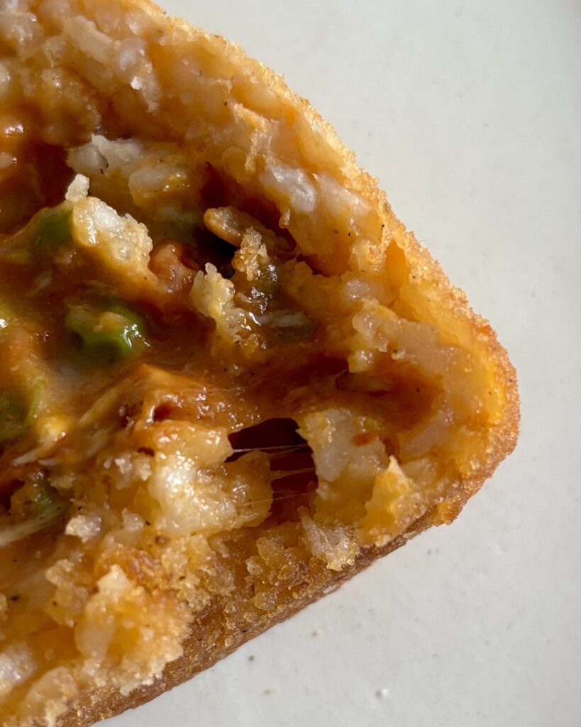 - un arancino al ragù (6 CHF), à la garniture généreuse et goûtue. Malheureusement réchauffé au micro-ondes sur place, il a ramolli: on recommande de le prendre froid et le réchauffer chez soi au four pour que la panure retrouve son croustillant. Ou qui sait, peut-être qu’il sera possible de le réchauffer dans un vrai four sur place à l’avenir.