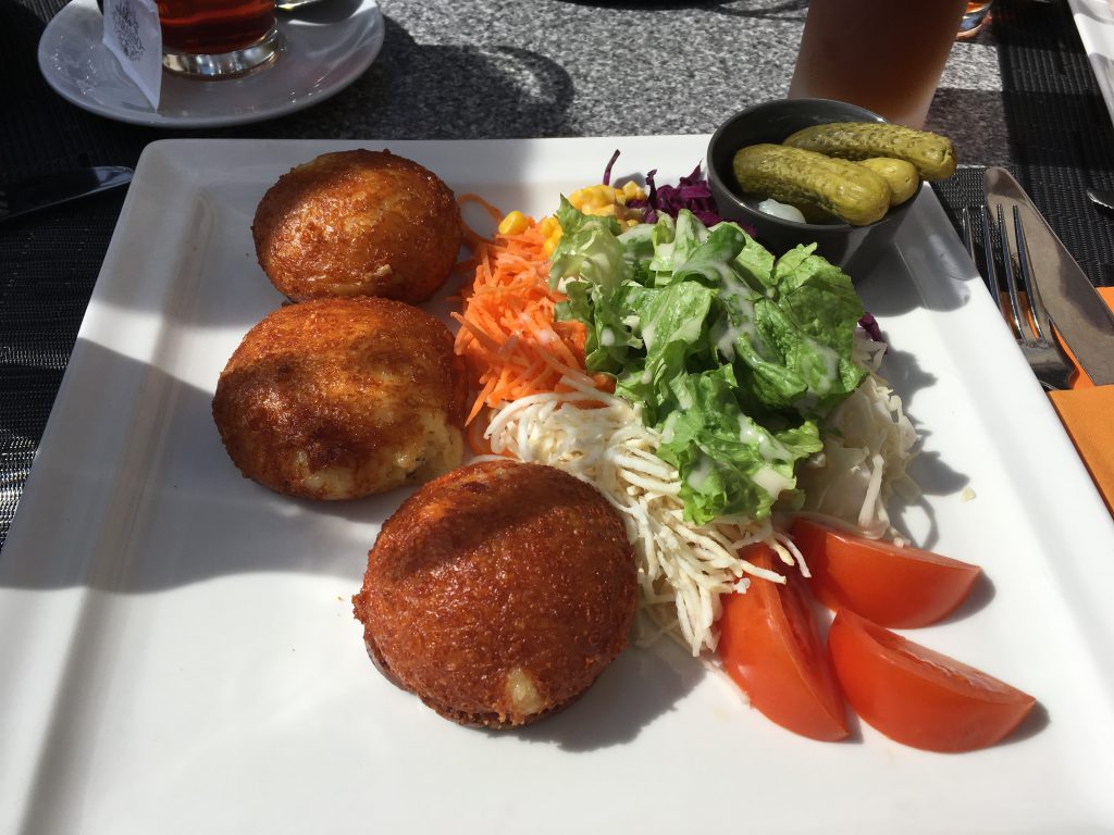 • le trio de malakoffs avec salade mêlée, pas aussi bons/crémeux à coeur que ceux d’Au Coeur de la Côte à Vinzel (notre référence à ce jour) mais bons quand même