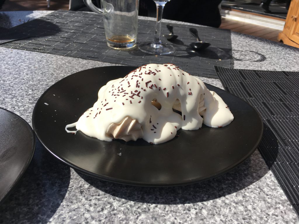 • les meringues avec double-crème généreuse aux paillettes de chocolat noir, valeur sûre et totalement light après une fondue