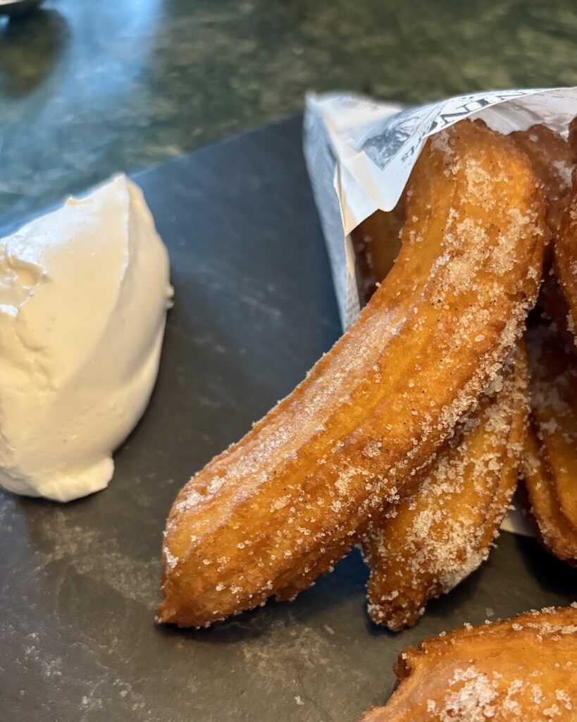- (2026) un autre incontournable de la carte en hiver, les canonissimes (et légers!) churros, à la pâte aérienne et friture très maitrisée, accompagnés d’une addictif crème chantilly à la vanille et de sauce au chocolat puissante (13 CHF). Un des meilleurs desserts goûtés sur Genève, clairement.
