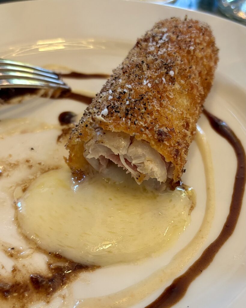 - (2026) l’incontournable cordon bleu au gruyère et jambon, sauce au sirop d’érable, à la fine panure au top (38 CHF), servi avec de délicieuses frites maison