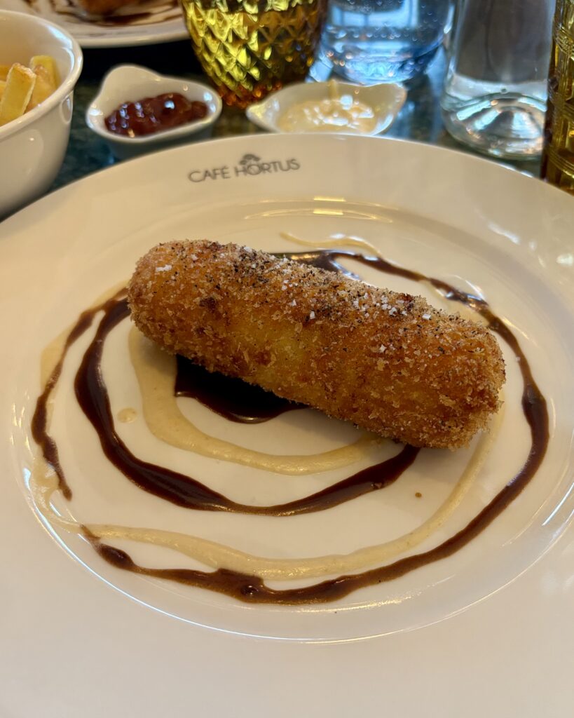 - (2023) le délicieux trio de petits malakoffs et courge de Nice snackée, avec une sauce au cerfeuil et vin cuit de poire (19 CHF). Crousti-moelleux et bien goûtus, sans base de pain, ils étaient bons. Le coeur aurait juste pu être un peu plus plus coulant.