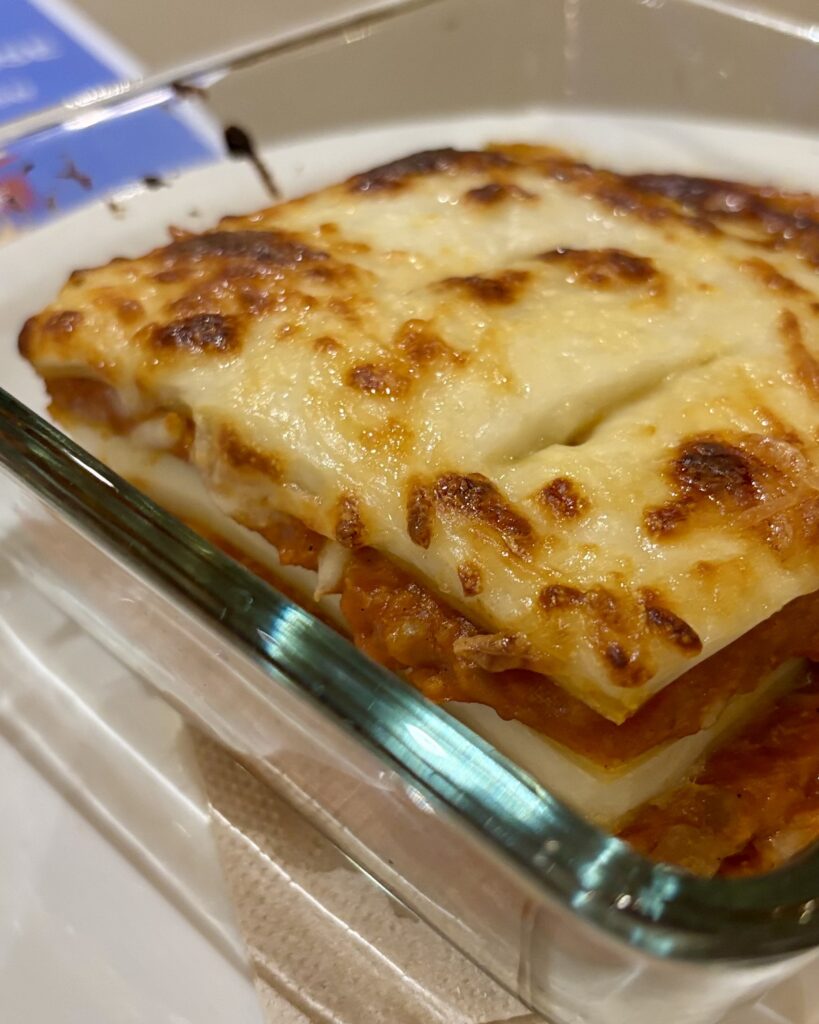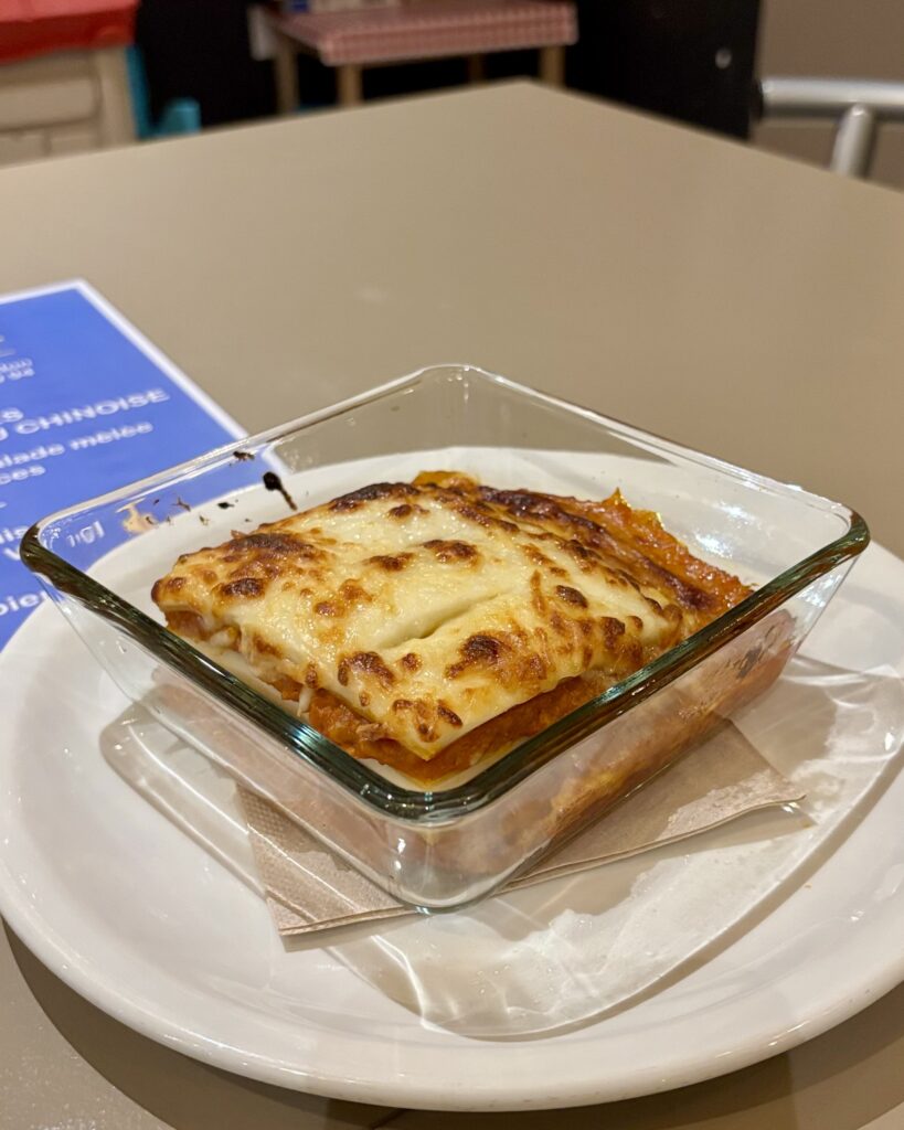 - la lasagne artisanale (23.5 CHF), pas maison mais « bien juteuse, bien bonne » comme nous l’a décrite la patronne. Et c’est vrai, il y avait une sacrée dose de béchamel crémeuse et de sauce, bien réconfortante.