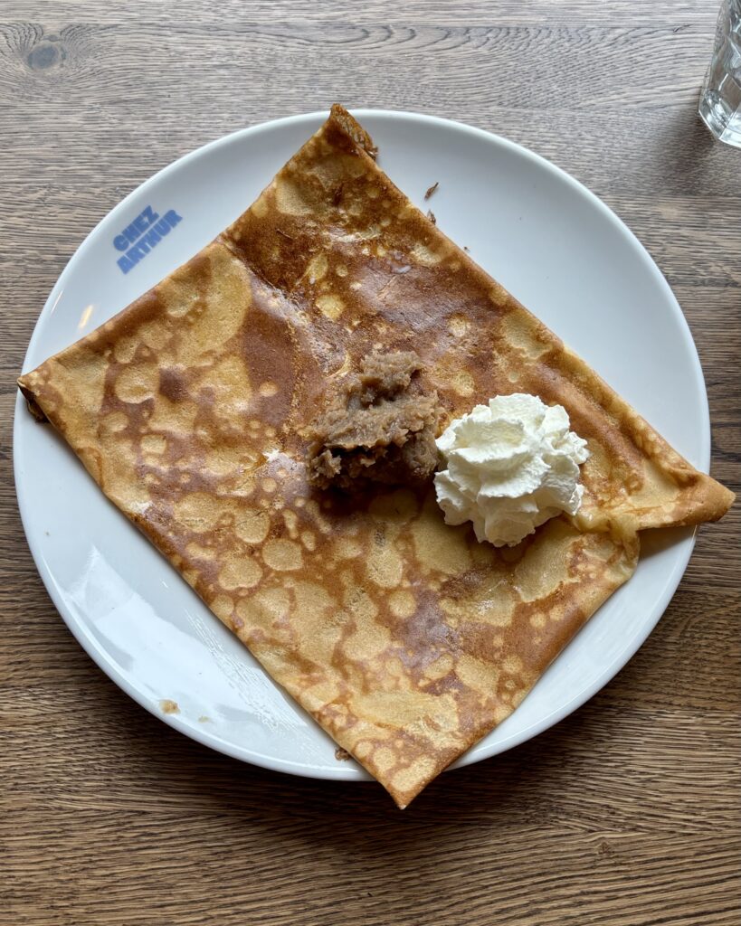 Est-ce qu’on y retournera? Très volontiers pour goûter d’autres galettes et crêpes, comme la galette « la vraie bretonne » avec de la saucisse ou « la rivière enchantée » garnie de crème fraiche parfumée à la truite.