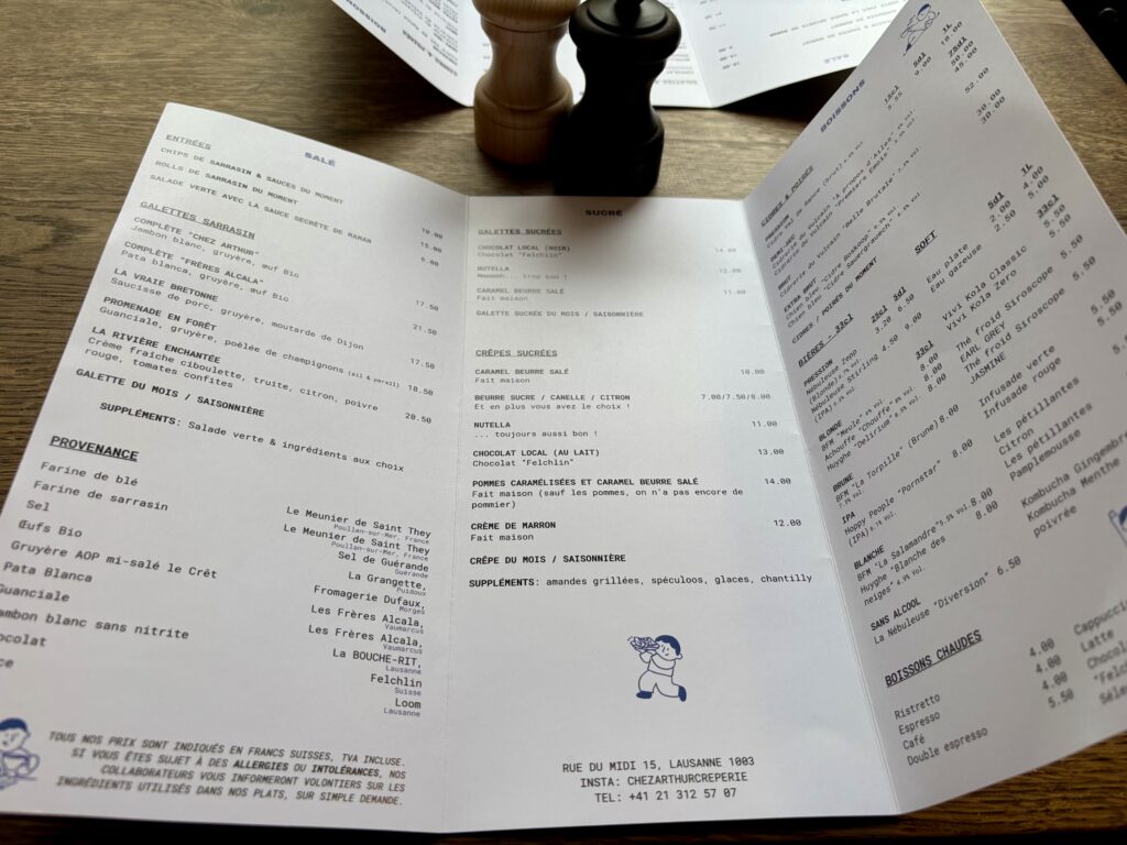 Nouveau et bien sympa: la crêperie bretonne Chez Arthur a ouvert mi-février 2026 en face de Coffee Page, avec son bar à cidres, ses galettes aux bords croustillants et ses crêpes sucrées. Ambiance vivante et décontractée, avec un accueil jeune, chaleureux et plein d’énergie, bien à l’écoute et au taquet en cette période de rodage. Et à bon entendeur: la terrasse devrait faire prochainement son retour et la réservation est conseillée le midi, bien qu’il y ait quelques places disponibles au bar.