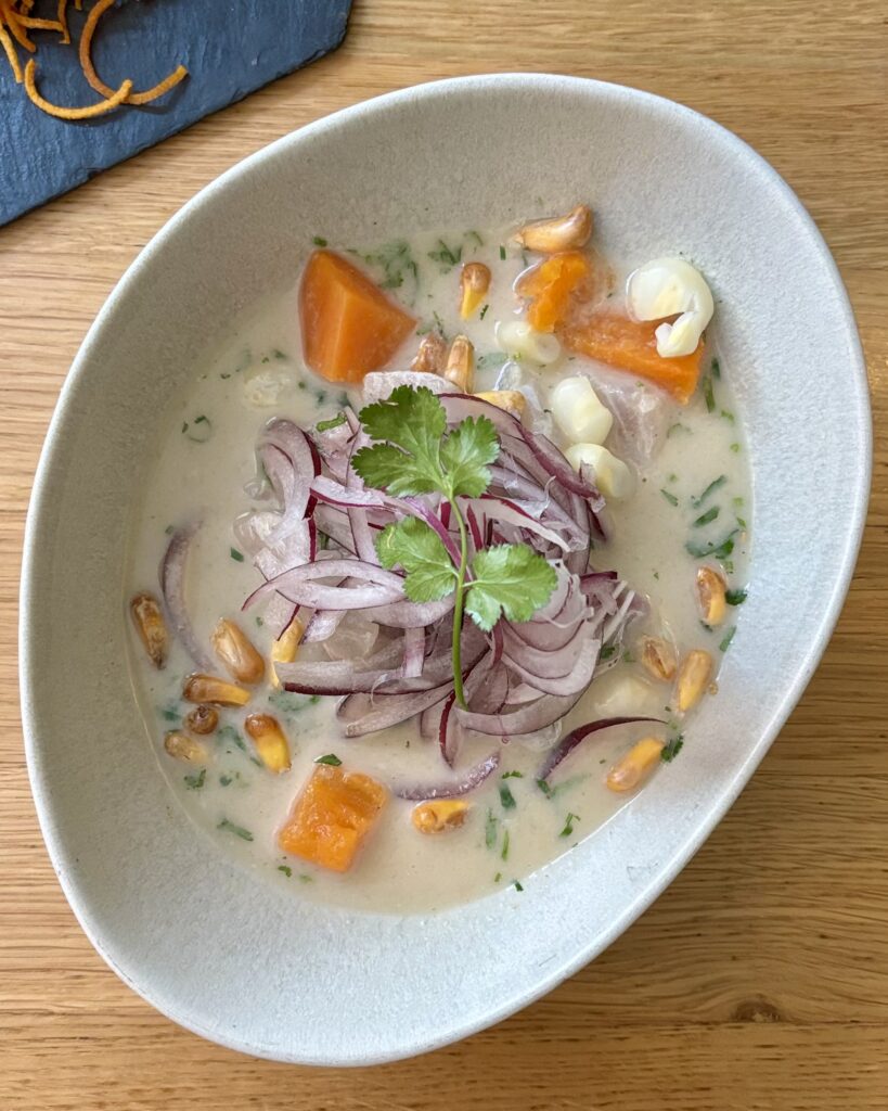 - (2026) le ceviche clasico (25 CHF), disponible uniquement en taille entrée, composé de dorade crue, patate douce, maïs choclo et cancha (maïs grillé), oignon rouge, coriandre et sa leche de tigre