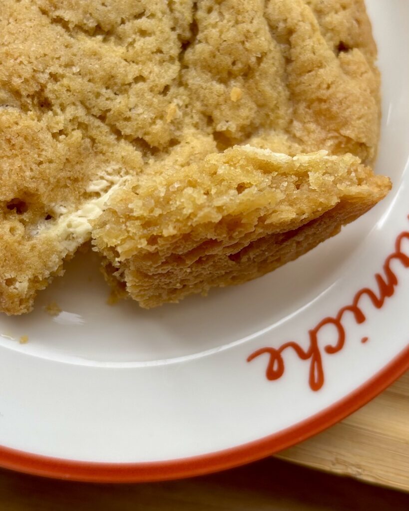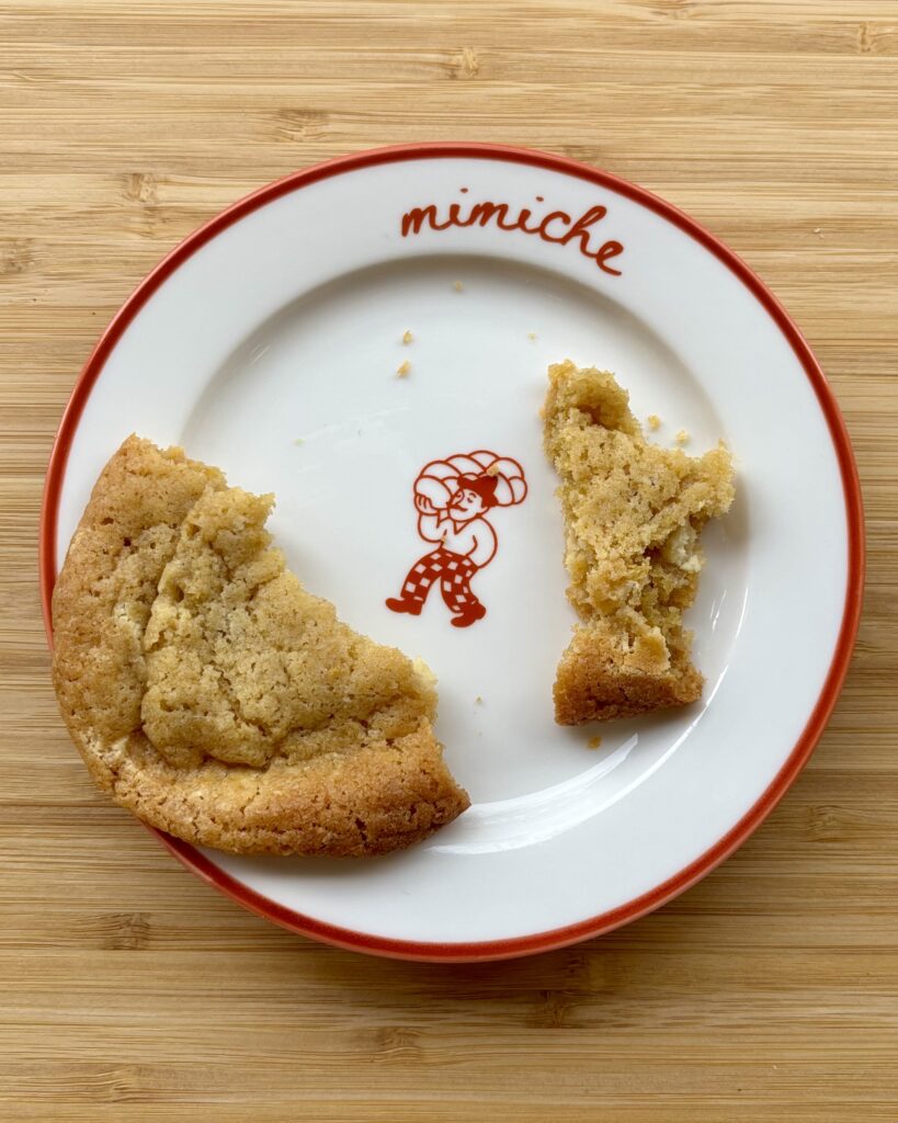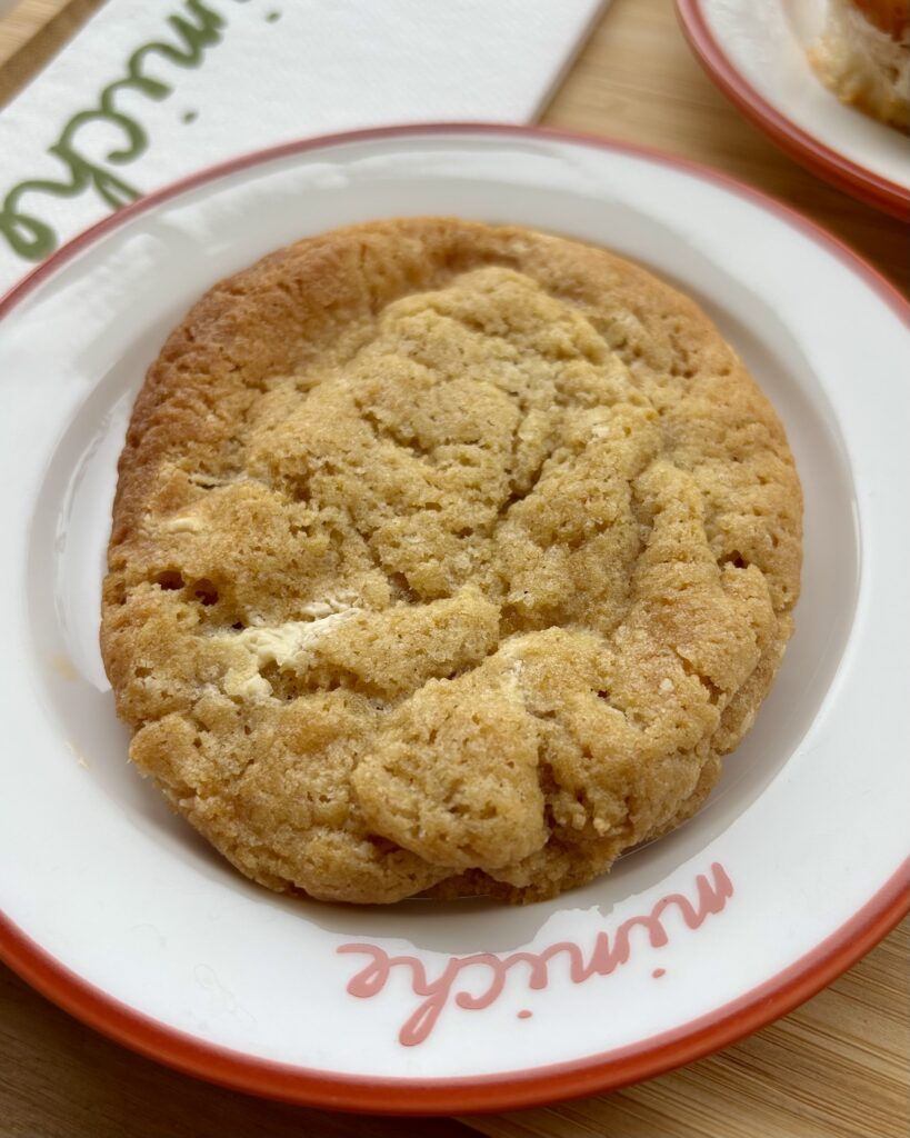 - l’excellent cookie citron-chocolat blanc (5.5 de tête), plat visuellement et crousti-mou, avec un coeur bien parfumé. On préfère habituellement les cookies plus dodus et avec de gros morceaux, mais celui-là, il passe vraiment bien. Cela donne envie de goûter les autres, notamment aux 2 chocolats.