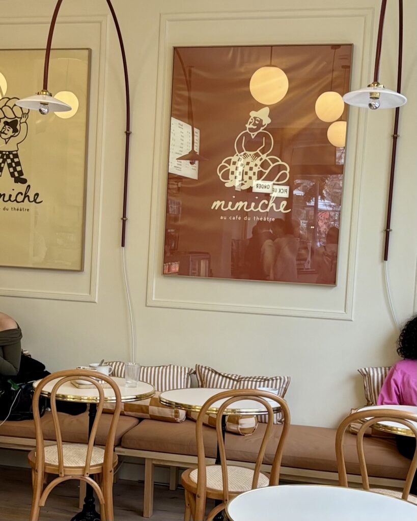 Jouxtant le Dorian, Mimiche se la joue café parisien, avec ses petites tables rondes à la fois en terrasse et dans la salle.