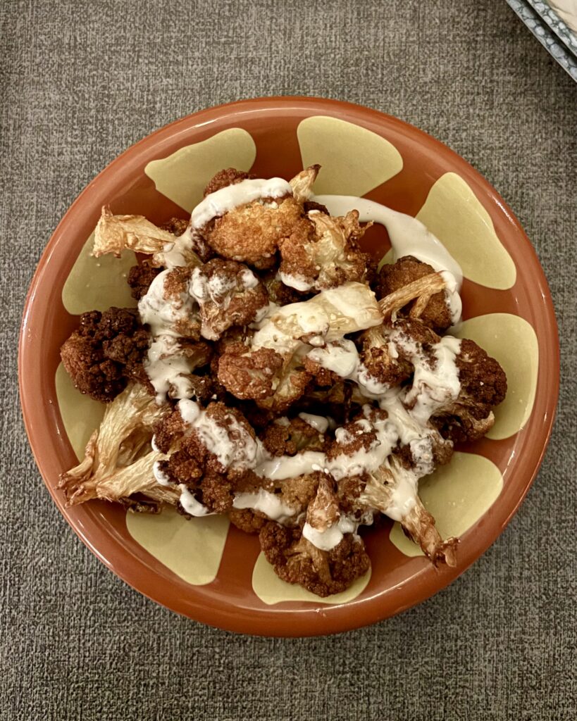- (12 CHF), des têtes de chou-fleur frites nappées de sauce tahina