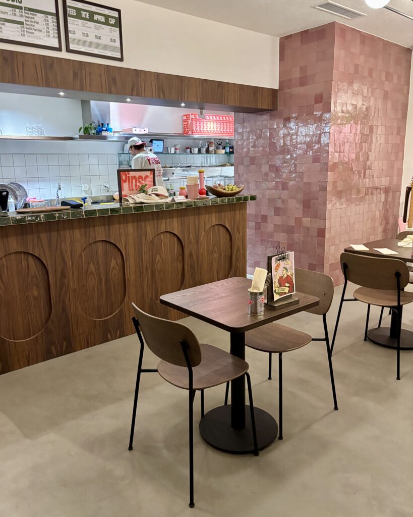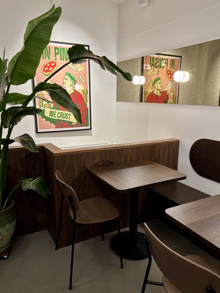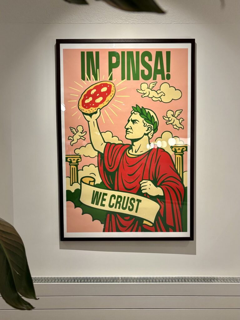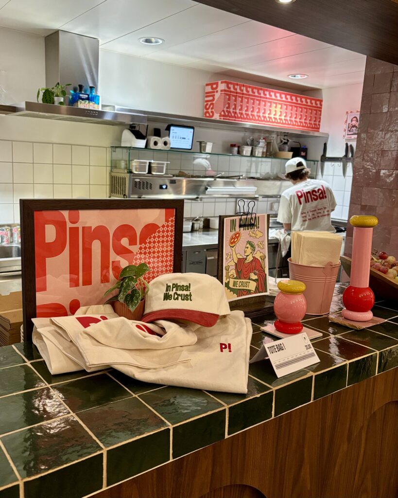 Remplaçant l’ex-Gives a Fork après des mois de travaux, Pinsa! fait honneur à sa tagline « in pinsa we crust » qui se décline sur les murs et les t-shirts du personnel, en passant par leurs casquettes.