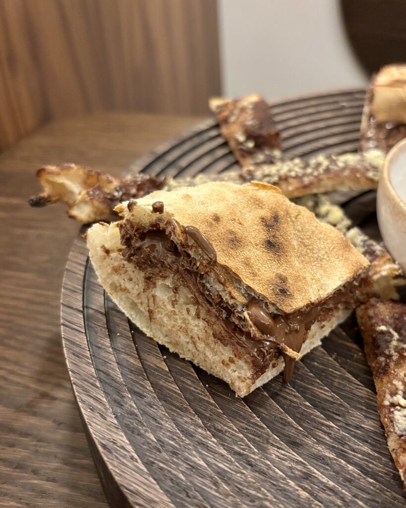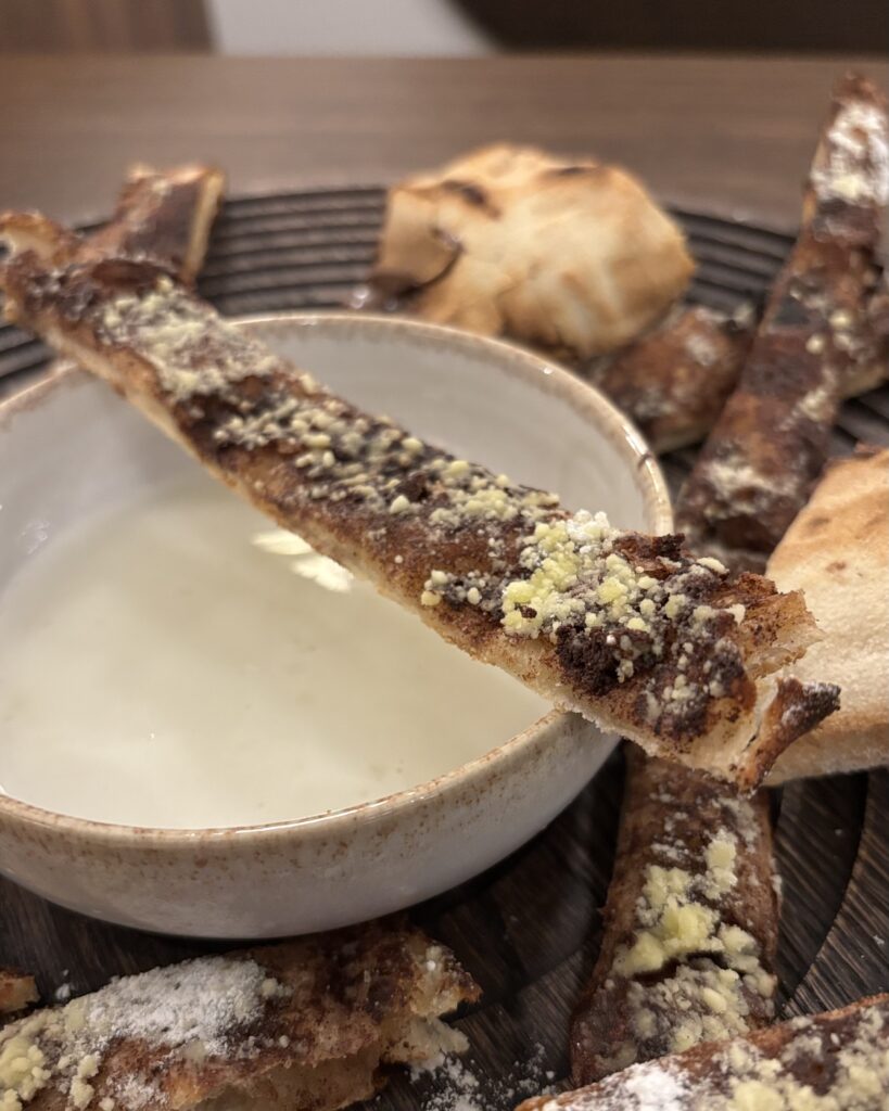 - en dessert, d’originaux pinsastix (12.9 CHF), des bâtonnets de pinsa à la cannelle et sucre glace à tremper dans du sweet icing, librement inspirés des addictifs cinnastix de chez Domino’s Pizza, mais en version « fait maison ». La pâte étant étalée minute, on peut demander lors de la commande si l’on la préfère fine (et plus craquante) ou plus épaisse (pour plus de moelleux) et la cuisine peut s’adapter.