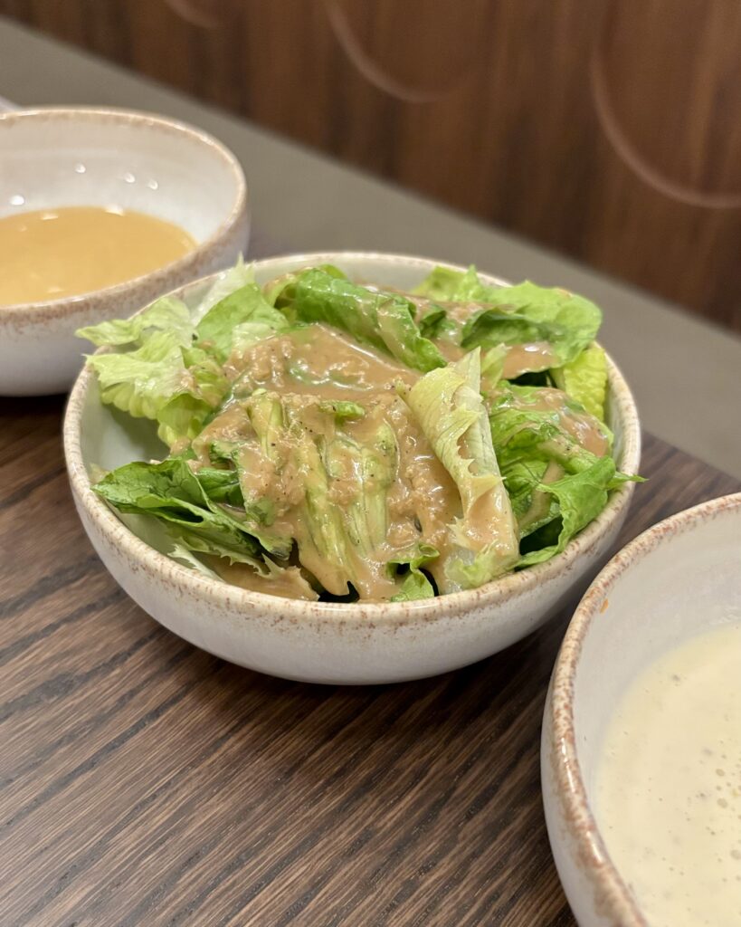 - une petite salade verte avec une vinaigrette maison qui réveille les papilles, imaginée assez vinaigrée pour contrebalancer le gras de la mortadelle ou des garnitures des pinse (pluriel de pinsa)