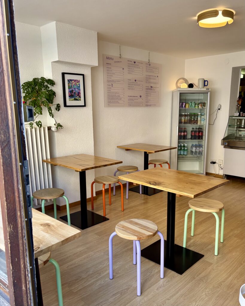 Si nos souvenirs sont bons, l’espace s’appelait auparavant le Café Gertrude: il a gagné en clarté et stylitude, avec des tables épurées aux tabourets pastels et un grand dessin-logo de la graphiste Pauline Scuderi, une des meilleures amies de la fille de la cheffe.