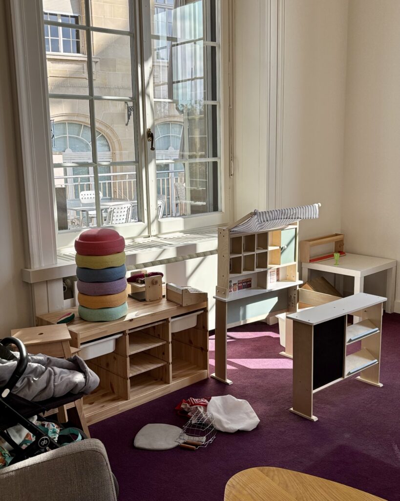 De tête et après avoir interrogé moult Comparses ayant des bébés ou jeunes enfants, cela est tout simplement le meilleur café/restaurant de toute la région pour les familles, avec plein de chaises hautes et surtout un grand espace rempli d’une multitude de jeux d’imitation sur le thème de la nourriture (il y a même un four à raclonettes!). Au top.