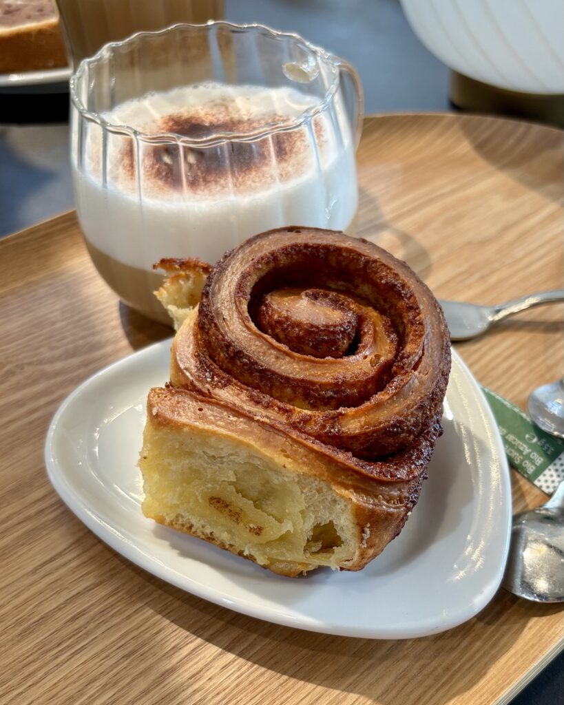 • un délicieux cinnamon roll bien moelleux (5 CHF), de chez Trigo Bakery