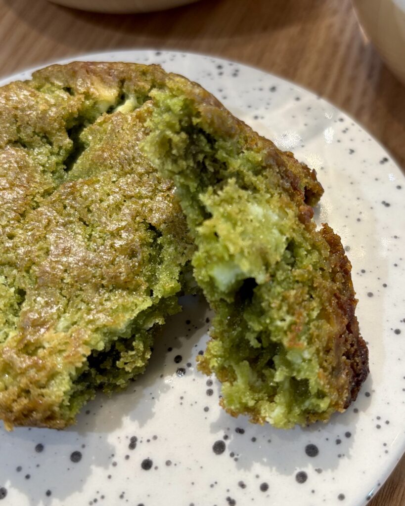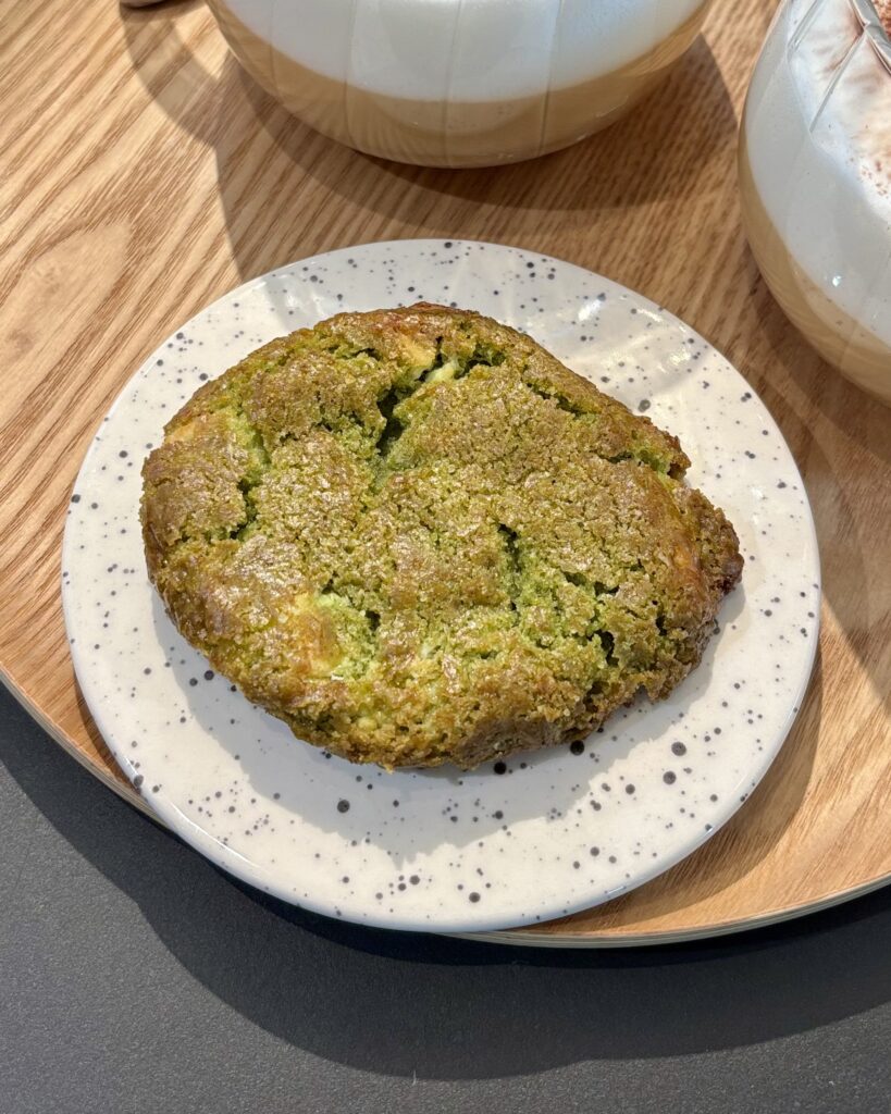 • le cookie matcha-chocolat blanc, une des douceurs maison élaborées par WØFF, pas mal, plat et peu cuit