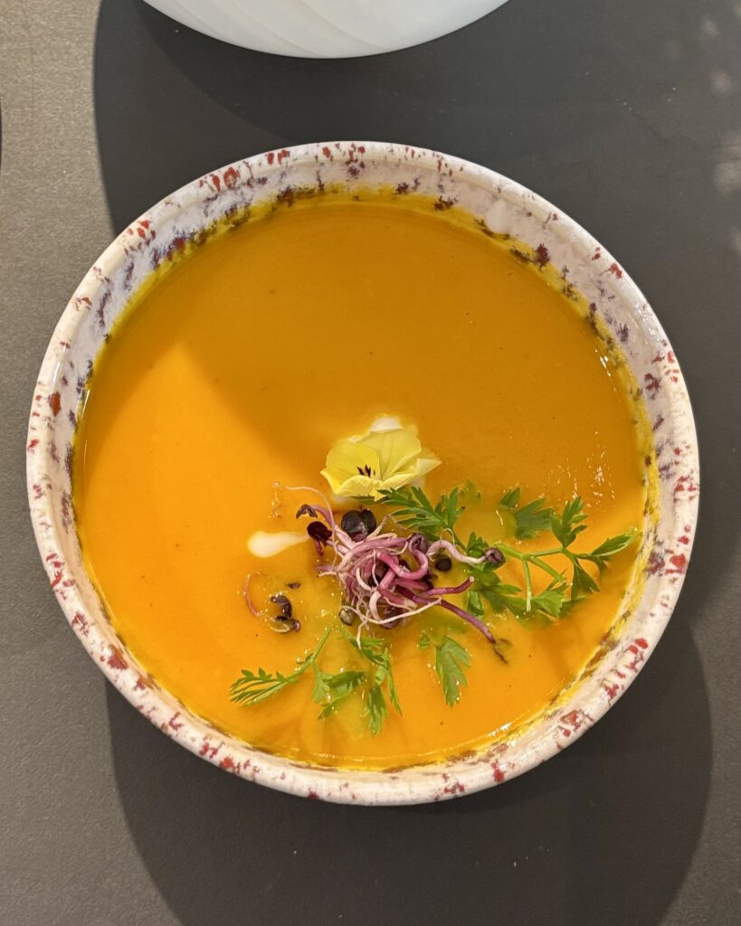 • la soupe de courge de saison, bien assaisonnée