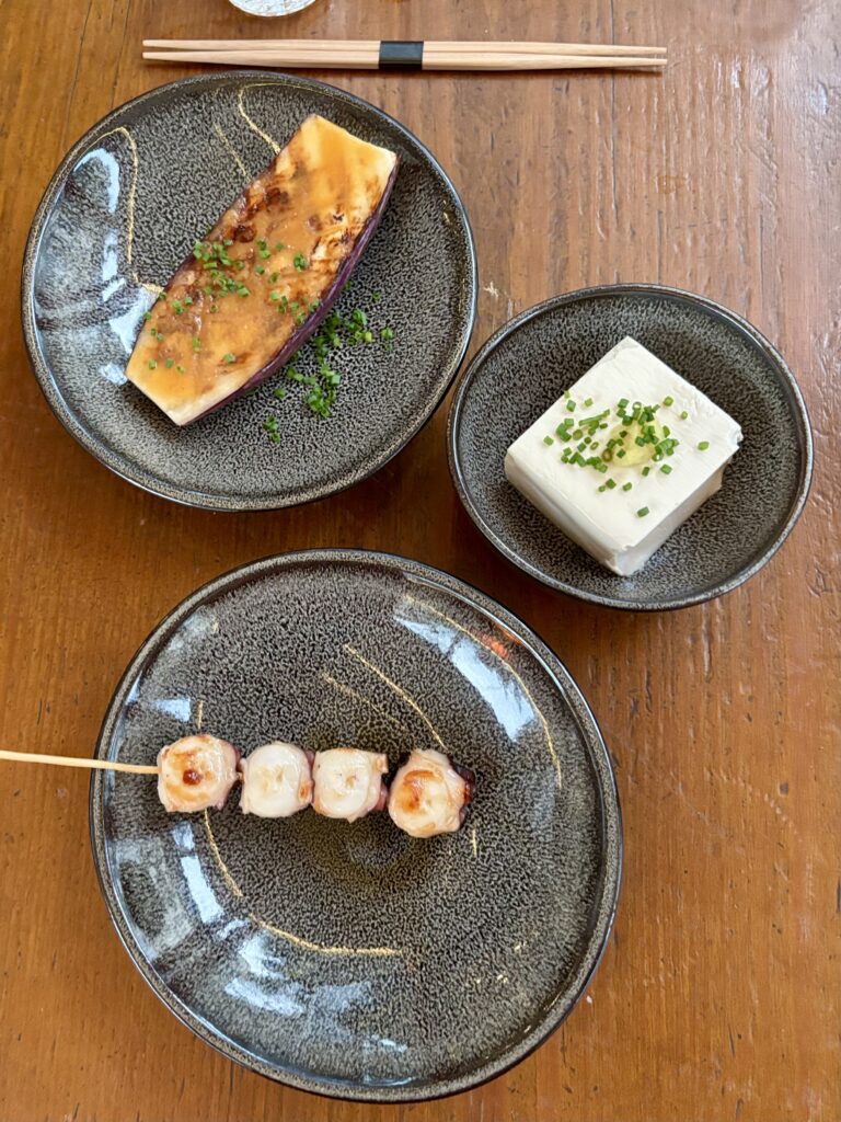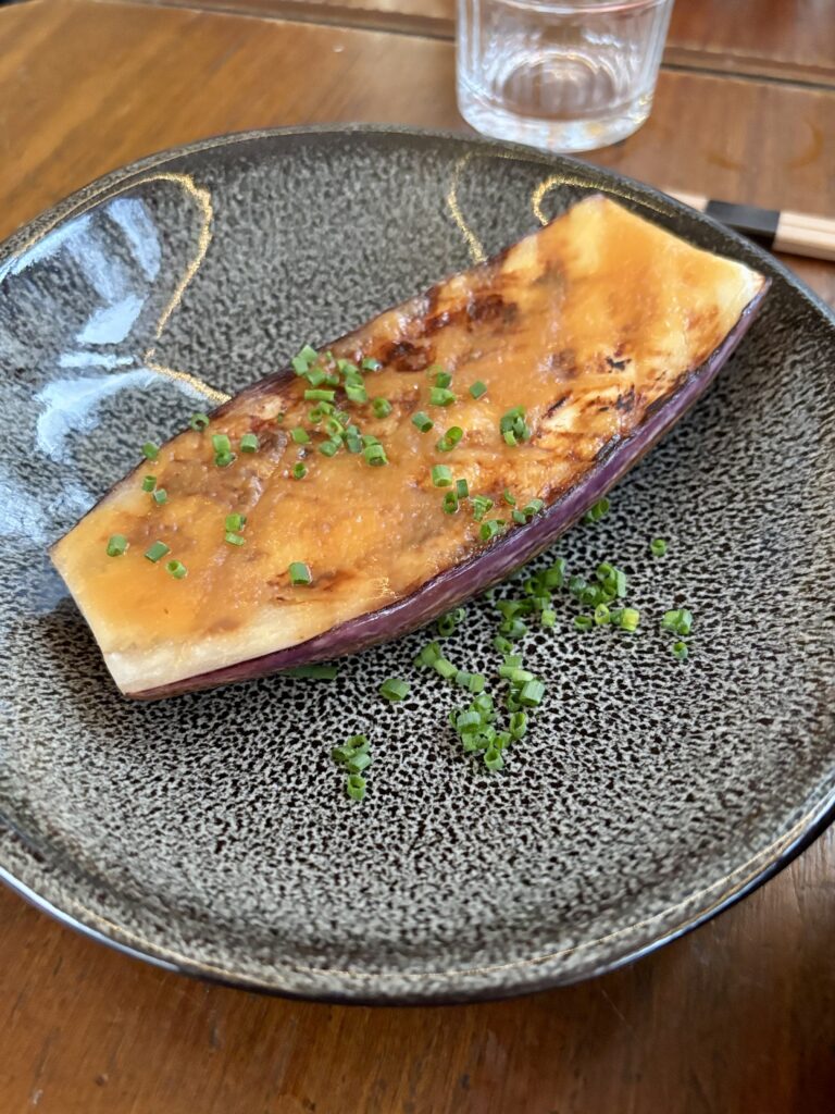- la demi-aubergine au miso (7.5 CHF), à l’assaisonnement pas mal du tout, un poil ferme