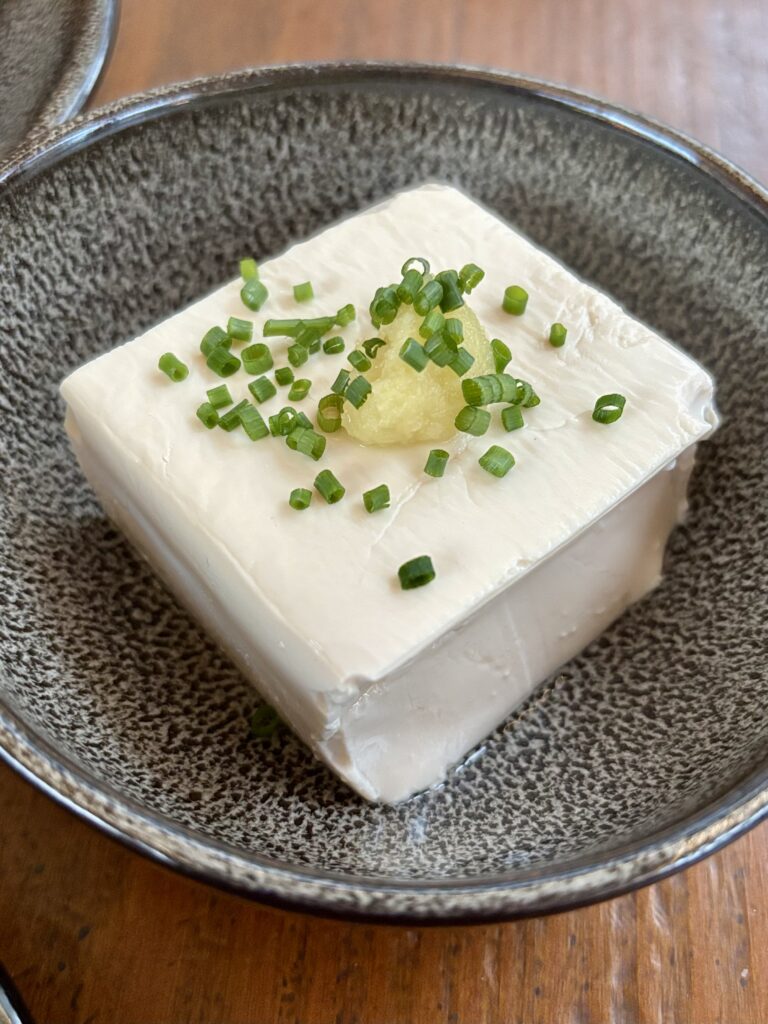 - du tofu froid (6.5 CHF), à la marinade assez discrète – ne pas hésiter à demander un supplément de sauce pour relever le tout si l’on a comme référence l’excellent tofu soyeux de chez Doki Doki